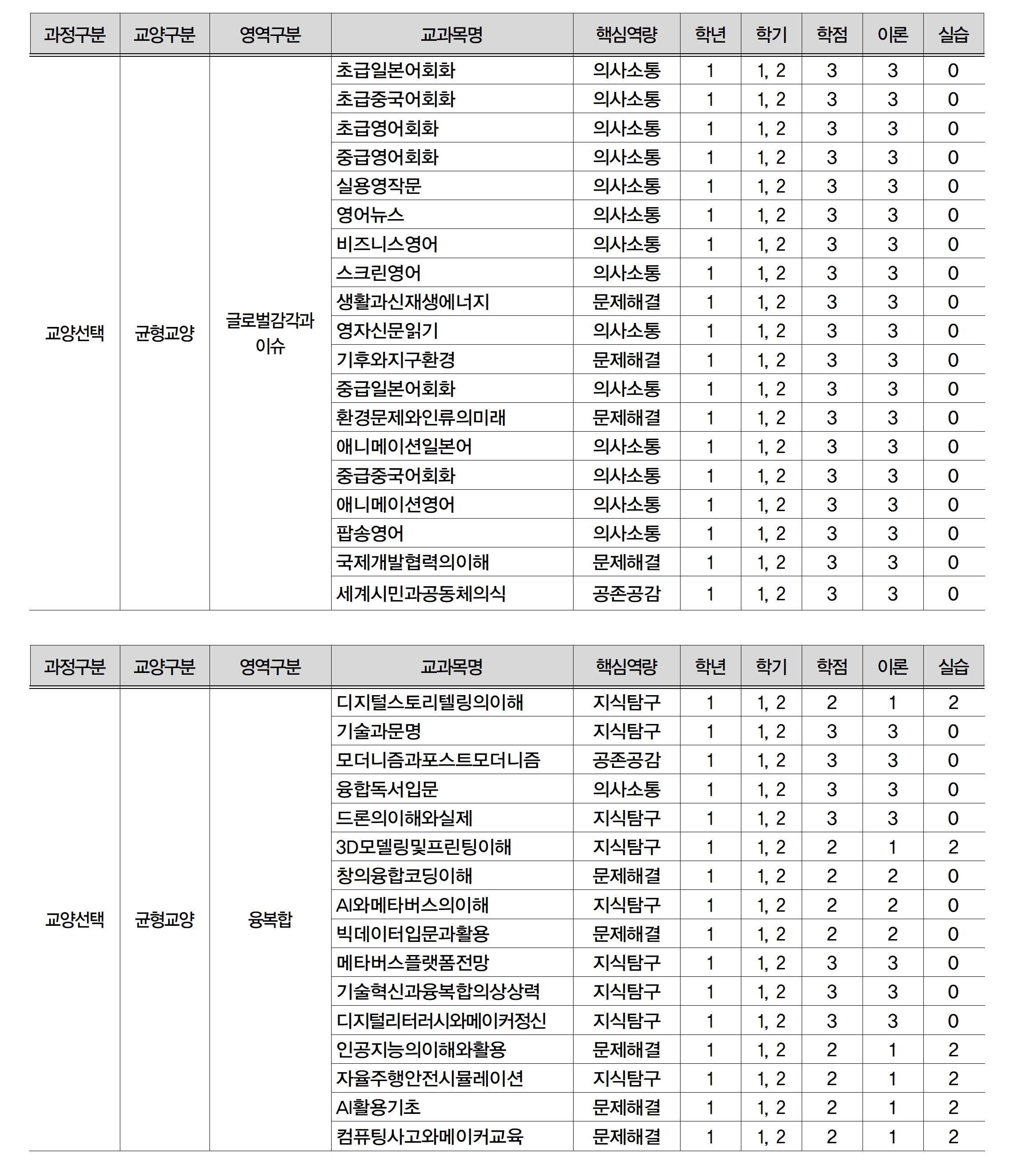 학생들이 대학교육을 이수하는데 필요한 공통지식·학문 탐구 방법·학문하는 태도에 관한 지식을 학습하는 교과목