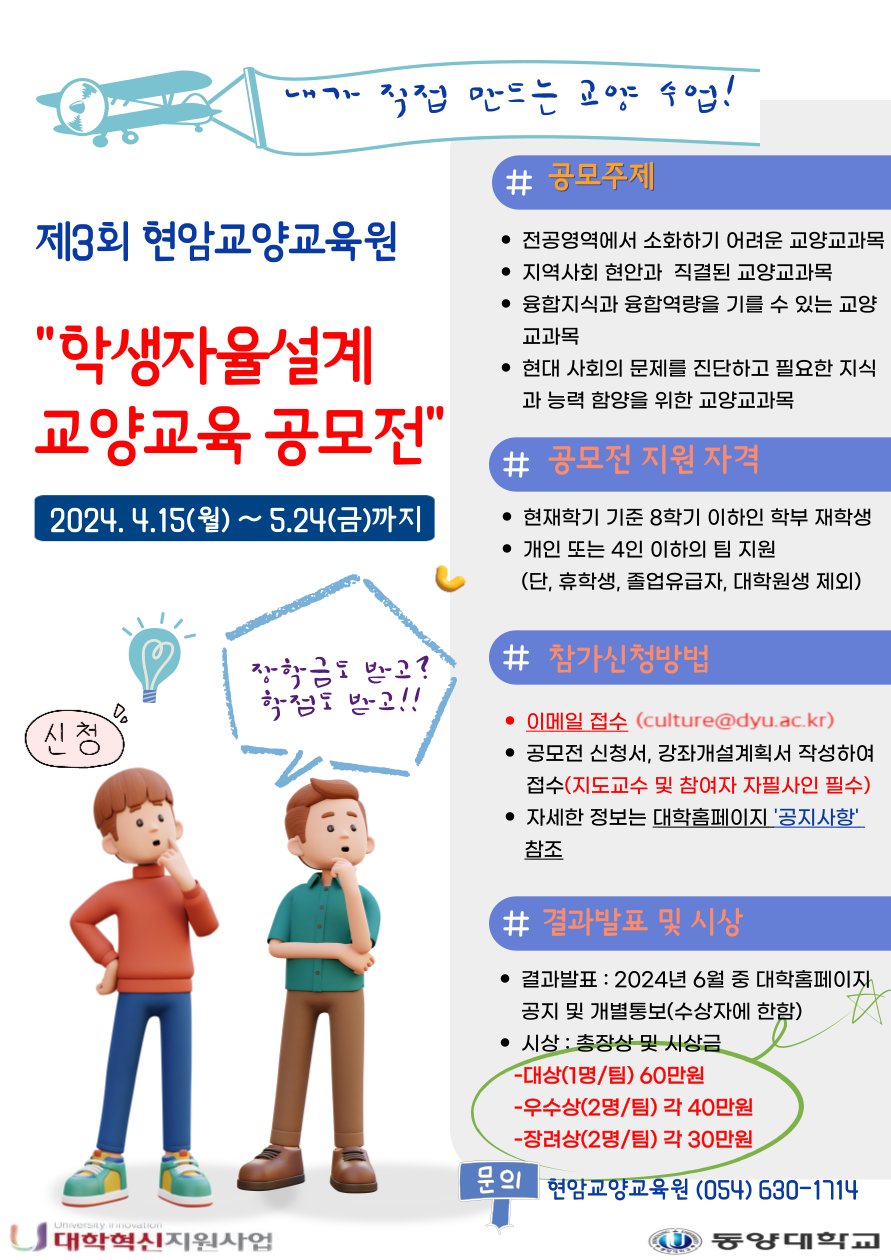 [2024 대학혁신] 제3회 학생자율설계 교양교육 공모전 신청 안내